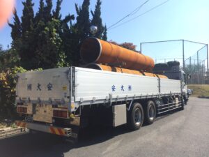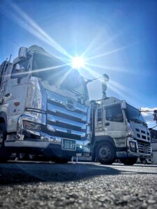 仕事内容: 鋼管、建材、コイル等を九州全域、北は中国地方までをメインに輸送しています。