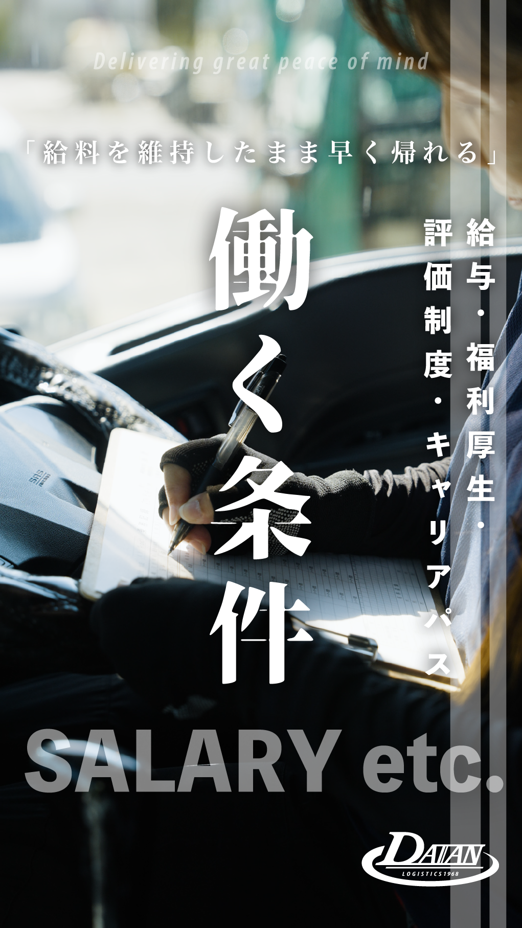 ご家族の皆様へ HOME ご家族の皆様へ 夢トラ新聞(社内報)を毎月発行 夢トラ記事はコチラ!☚クリック 夢トラは、毎月発行される社内報です。家族の皆さんへは給与明細に同封してお送りしております。社内での出来事や取り組み、業界の情報等を発信して、会社と社員とその家族の風通しを良くすることを目的としています。トラックドライバーは、コースによっては不規則になったり、長距離運行により毎日家に変える事ができなくなったりと、家族とのすれ違いが起きやすくなるときがあります。家族からしたら、夫や妻がどのような会社で働いていて、どんな仕事に従事しているのか興味がありますが、口下手だったりすると、上手く伝える事ができない人もいるようです。そんな時に、夢トラを見る事で、会社のことを少しでも知っていただいたり、家族のことが紹介されたりすると、嬉しくなったりしていただけたら幸いです。 安全性優良事業者として認定されています 大安では、「安全は全てにおいて最優先」を掲げ、社員一丸となって大きな安心をお届けできるような物流会社を目指しています。会社として「安全性優良事業所」、通称Gマーク制度の取り組みを推進し、安全への意識を常に維持・向上し続けるために、定期的に外部機関の監査を受けるなど、コンプライアンスを重視しています。 安全性優良事業所とは、全国貨物自動車運送適正化事業実施機関が、3テーマ30項目以上の厳しい評価基準を設け、評価し、全ての認定要件をクリアした事業所だけが「安全性優良事業所」として認定されます。また、認定後も2~4年ごとに更新審査があるため、認定事業所は安全性を維持し続ける必要があります。 運転者職場環境良好度認証制度 2つ星取得 「働きやすい労働環境」を実現 職場環境改善の取り組みを「見える化」:することで、求職者が安心してトラック運転者として就職できるようにしています。 「働きやすい職場認証制度」とは、 職場環境改善に向けたトラック、バス、タクシー事業者の取組みを「見える化」することで、求職者の運転者への就職を促進し、各事業者の人材確保の取組みを後押しすることを目的とした制度です。 審査要件 ・法令遵守等、 ・労働時間・休日、 ・心身の健康、 ・安心・安定、 ・多様な人材の確保・育成、 ・自主性・先進性等 以上の6分野について、基本的な取組要件を満たせば、認証を取得できます。 働く条件 通勤 安定した仕事量 安定した仕事があり、仕事が無くて困ることはありません。 また、各種手当が充実しており、歩合給制もあるので、頑張れば頑張るだけ給与に還元します! 休暇制度 社員全員に休日を最大限考慮してお休みを取得していただいています。 日曜、祝日やお盆・正月はお休みなので、家族との時間もしっかり取れます! ワークバランス 待遇・福利厚生 各種保険完備 マイカー・バイク通勤可 有給休暇あり 歩合給制あり 奨励金あり 各種手当あり (無事故・家族・公休出勤・リフト・運行時間外) 交通費支給 (会社規定あり) 制服貸与
